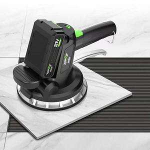13、3在瓷砖背面用齿型抹刀敷涂瓷砖胶浆料,将瓷砖胶刮成条状,保证涂满瓷砖背面和基面4使用三爪玻璃吸盘辅助铺贴,平稳移动放置于基面上再使用瓷砖震平器在砖面上水平震动,排空 5在已定位好的边插入找平器底座,检验平整后找平楔子并夹紧找平器,再继续使用瓷砖震平器在砖面上水平震动。